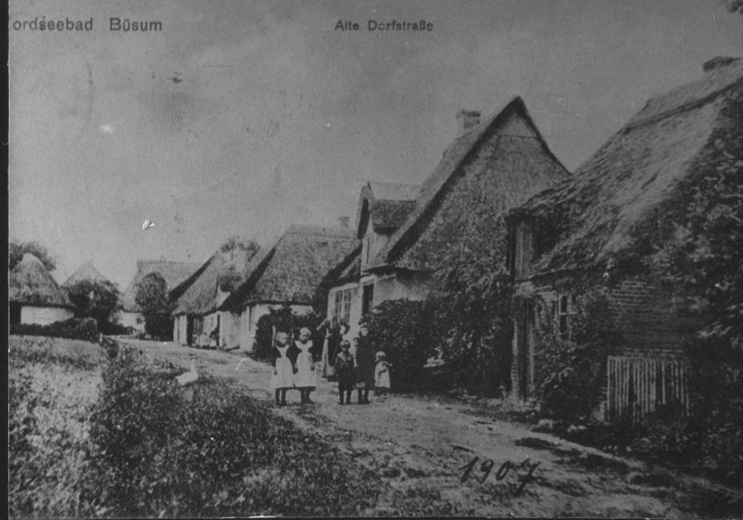Die Alte Dorfstraße in Büsum vor etwa 100
